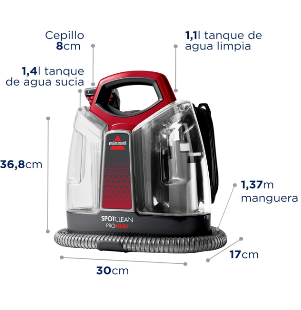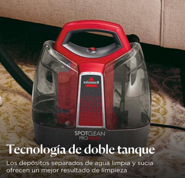 Trabajamos con la Bissell SpotClean ProHeat, una máquina de alto rendimiento equipada con Heatwave Technology y motor de 330W, que garantiza una limpieza profunda y efectiva. Combinamos su potencia con productos específicos de la marca Bissell (Spot & Stain), pensados para cuidar los tejidos y garantizar resultados visibles desde la primera pasada.